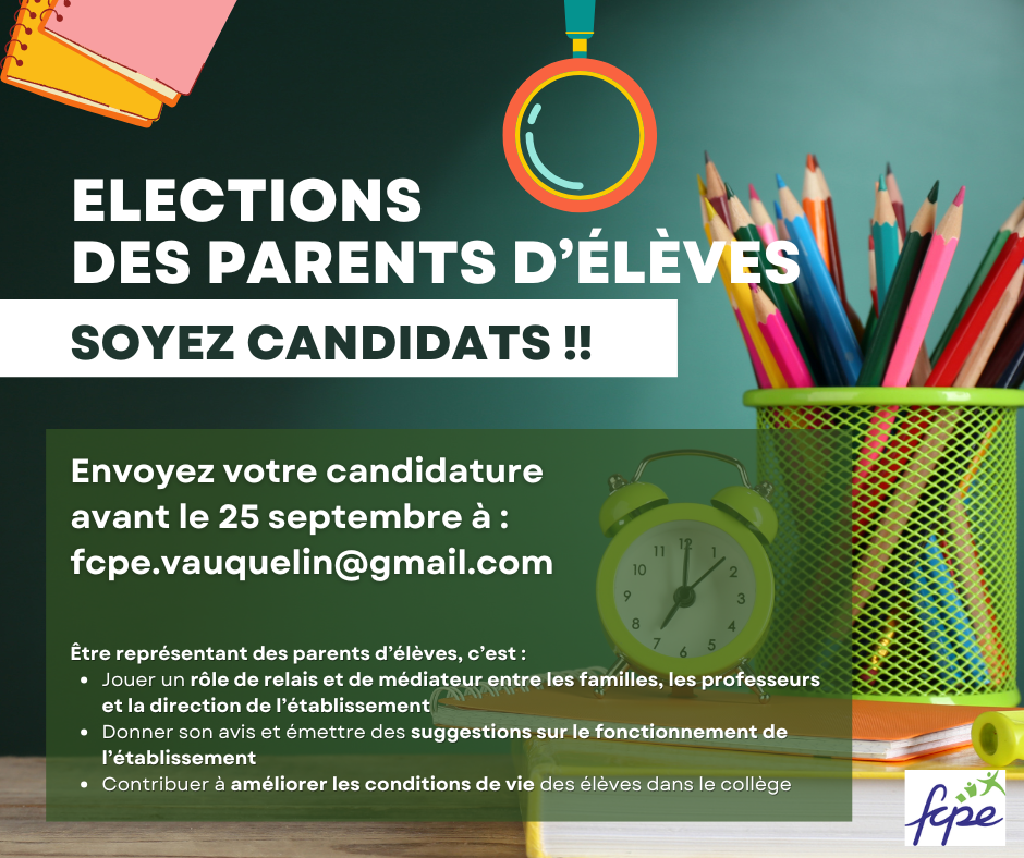 Les parents peuvent envoyer leur candidature jusqu'au 25 septembre à l'adresse mail : fcpe.vauquelin@gmail.com